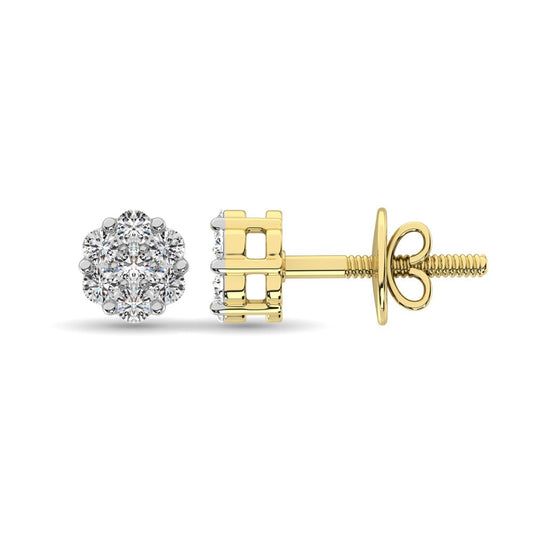 14K Yellow Gold 3/4 Ct.Tw. Diamond Flower Studs Earrings