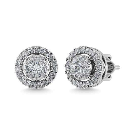 Diamond 5/8 Ct.Tw. Cluster Earrings in 14K White Gold