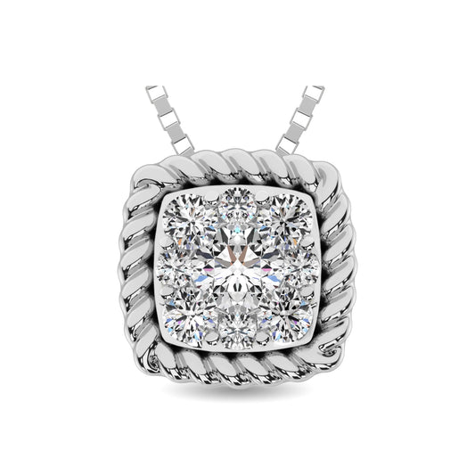 10K White Gold 1/6 Ct.Tw. Diamond Square Shape Pendant