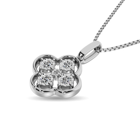 14K White Gold 1/4 Ct.Tw. Diamond Flower Pendant
