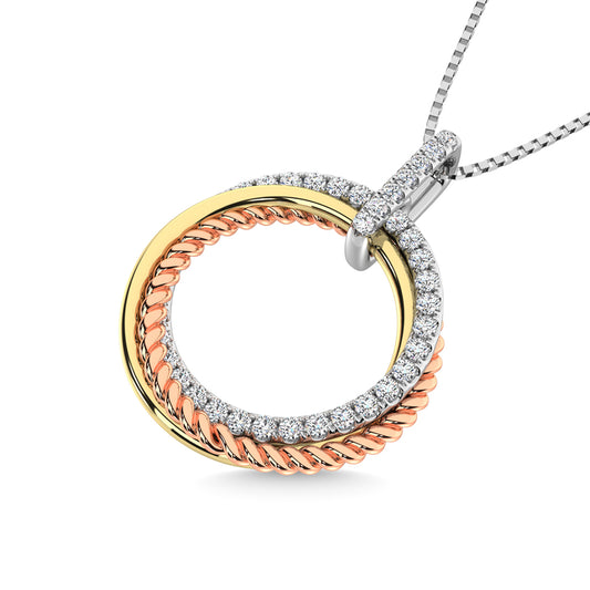 14K Three Tone Diamond 1/5 Ct.Tw. Circle Fashion Pendant