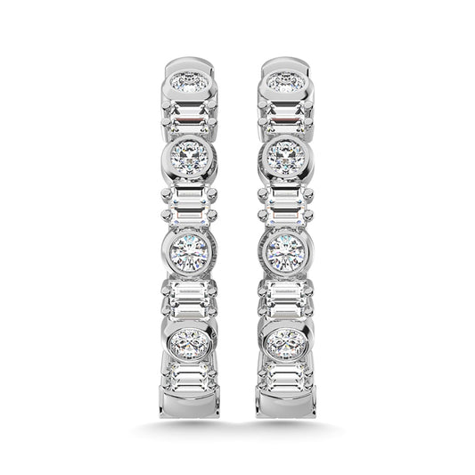 14K White Gold Diamond 1/2 Ct.Tw. Hoop Earrings