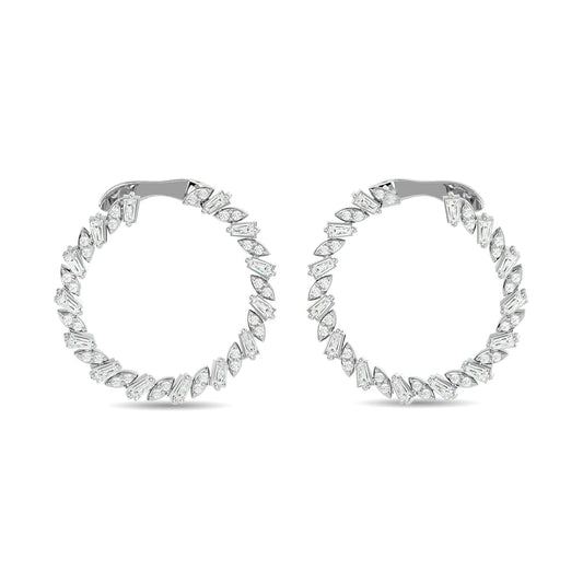 14K White Gold Diamond 1 Ct.Tw. In and Out Hoop Earrings