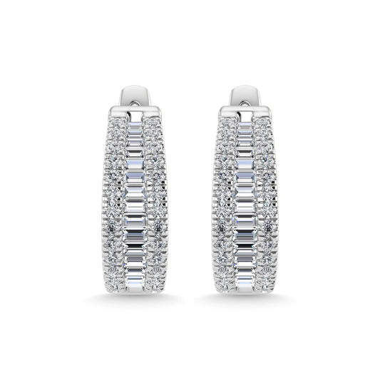 Diamond 3/4 Ct.Tw. Straight Baguette Hoop Earrings in 14K White Gold