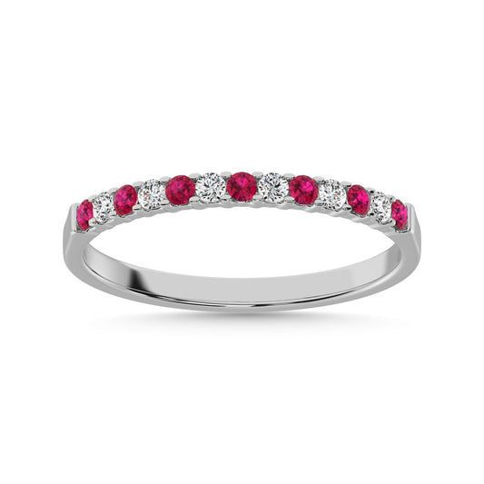 14K White Gold 1/4 Ct.Tw. Alternate Diamond And Ruby Machine Band