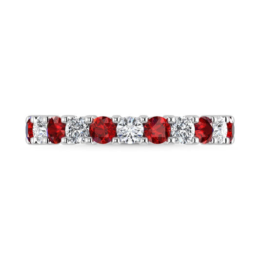 14K White Gold Machine Set Alternate Ruby and Diamond 5/8 Ct.Tw. Band