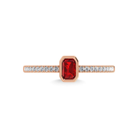 14K Rose Gold Diamond 3/8 Ct.Tw. And Ruby Fashion Ring
