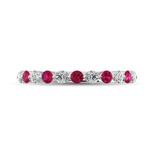 Diamond 7/8 Ct.Tw. And Ruby Stack Band in 14K White Gold ( 6 Diamond and 5 Ruby )