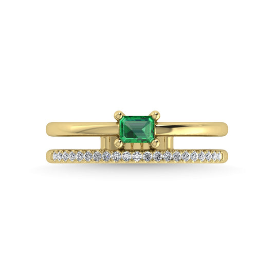 14K Yellow Gold Diamond and Emerald 1/3 Ct.Tw. Fashion Ring