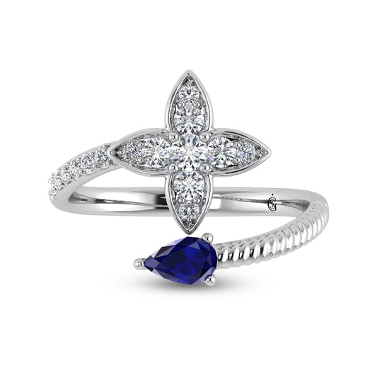 14K White Gold Diamond 1 1/3 Ct.Tw. & Blue Sapphire Fashion Ring