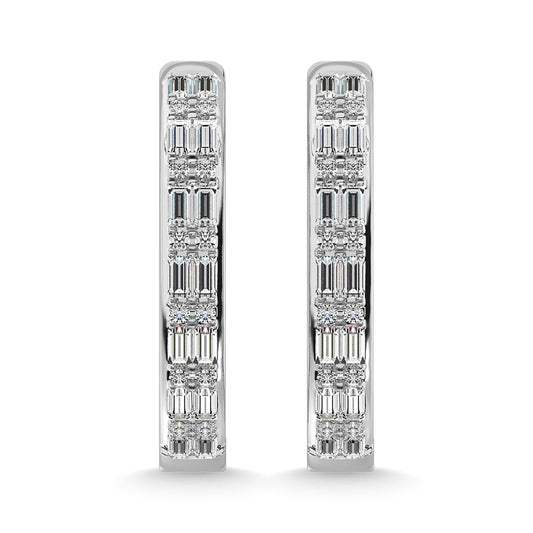 Diamond 1/3 Ct.Tw. Round and Baguette Hoop Earrings in 10K White Gold