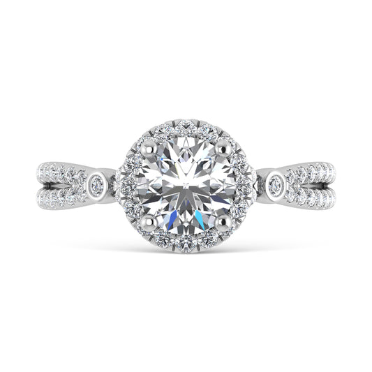 14K White Gold Lab Grown Diamond 2 Ct.Tw. Round Shape Halfway Engagement Ring (Center 1/2 CT)