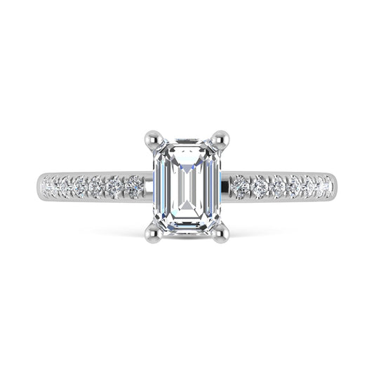 14K White Gold Lab Grown Diamond 7/8 Ct.Tw. IGI Certified Emerald Shape Hidden Halo Engagement Ring