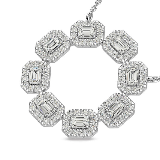 Diamond 2 Ct.Tw. Circle Round and Straight Baguette Fashion Pendant in 14K White Gold