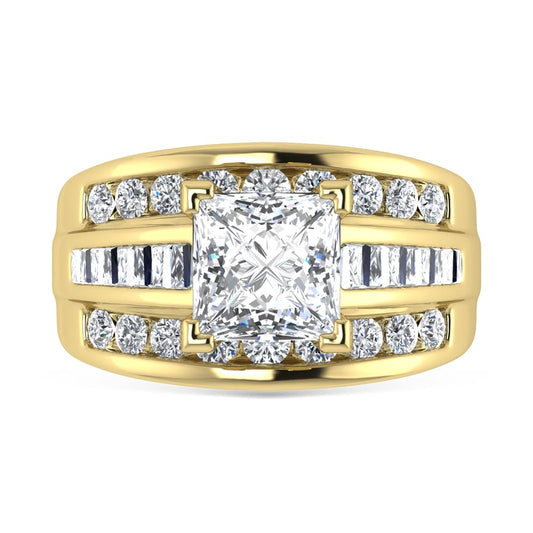 10K Yellow Gold Lab Grown Diamond 3 7/8 Ct.Tw. Princess Shape Engagement Ring (IGI Certified 3CT)