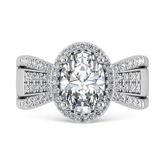 14K White Gold Lab Grown Diamond 2 1/2 Ct.Tw. Oval Shape Engagement Ring (Center 2CT)