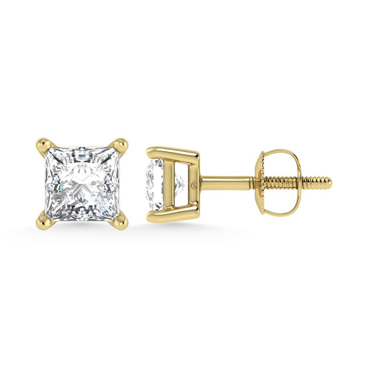 14K Yellow Gold Lab Grown Diamond 2 Ct.Tw. IGI certified CVD VS1+ G+ Princess Stud Earrings (Available in 0.50ctw to 4ctw)
