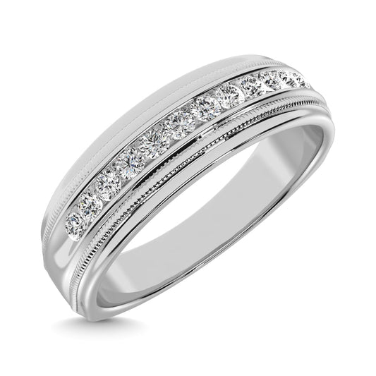 10K White Gold 1/2 Ct.tw Round Cut Diamond Men?s Wedding Band