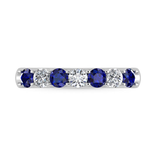 14K White Gold Machine Set Alternate Blue sapphire and Diamond 7/8 Ct.Tw. Band