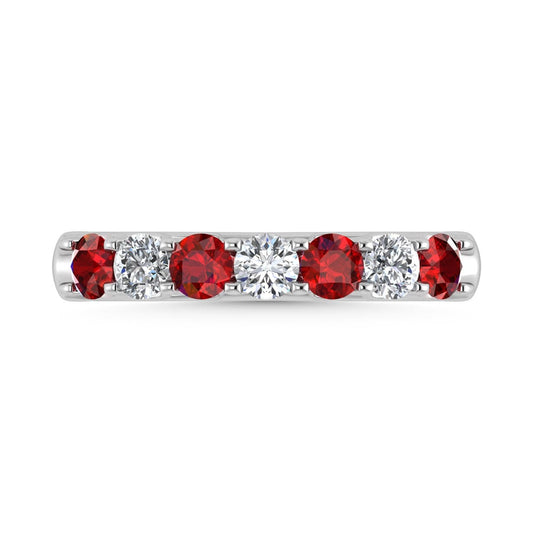 14K White Gold Machine Set Alternate Ruby and Diamond 7/8 Ct.Tw. Band