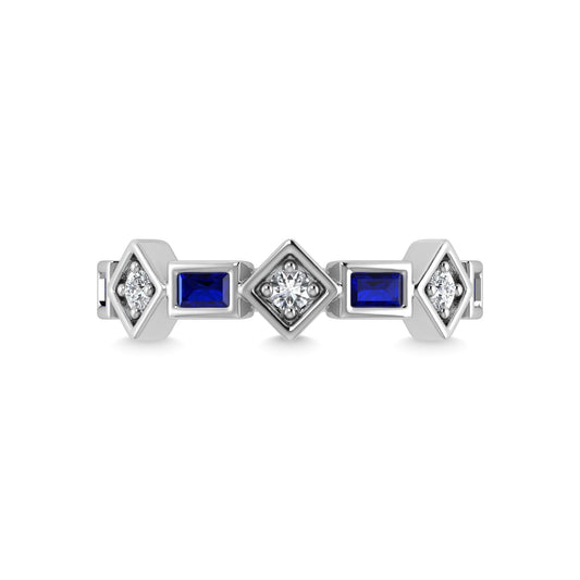 14K White Gold Blue Sapphire & Diamond 7/8 Ct.Tw. Stackable Band