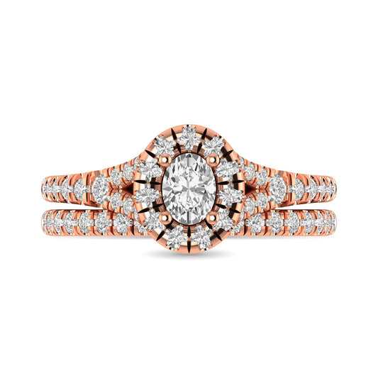 Diamond Split Shank Single Halo Bridal Ring 1 Ct.tw Oval Cut in 14K Rose Gold