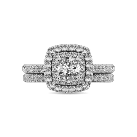 14K White Gold 1 Ct.Tw. Diamond Halo Engagement Ring