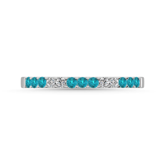 14K White Gold 1/4 Ct.Tw. Alternate Diamond And Aqua Marine Machine Band