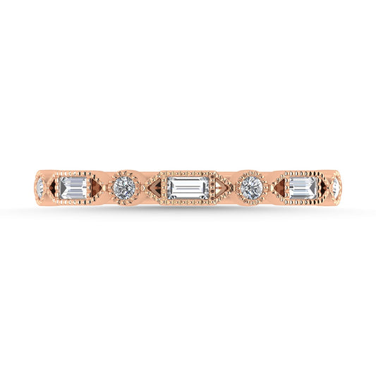 Round and Marquise Shape 1/6 Ct.tw Diamond Stackable Band in 10K Rose Gold