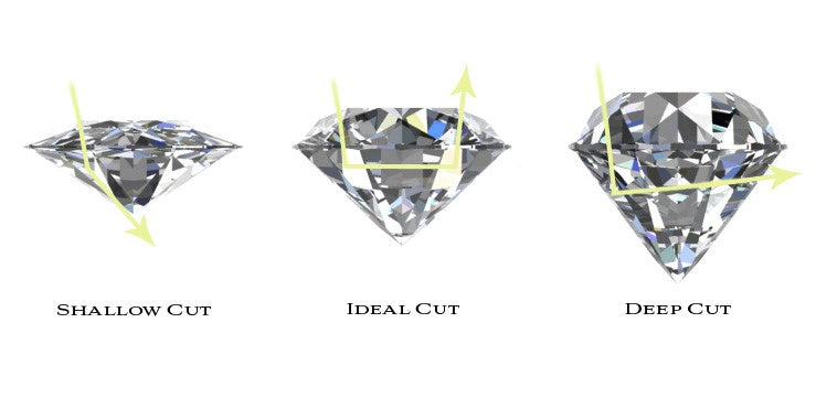 Cut refers to the proportions, finish, symmetry, and polish of the diamond. These factors determine the fire and brilliance of a diamond. Well cut diamonds sell at a premium and poorly cut diamonds sell at discounted prices. With the advent of technology, the cut of the diamond can be determined through the use of the Dia-Mension system, a computerized system which takes accurate measurements and proportions of a diamond in seconds, in addition to the standard millimeter gauge.