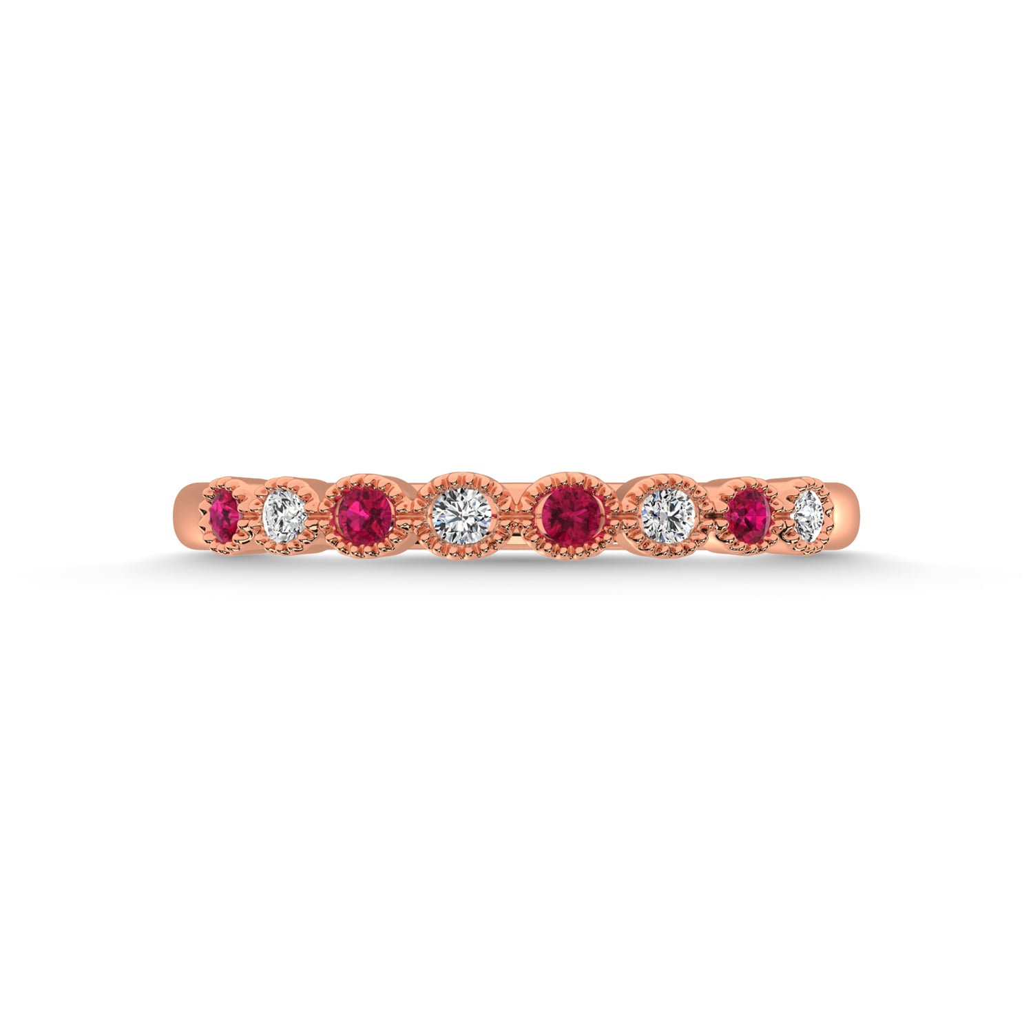 Ruby and Alternate Diamond 1/6 Ct.Tw. Stack Band in 14K Rose Gold