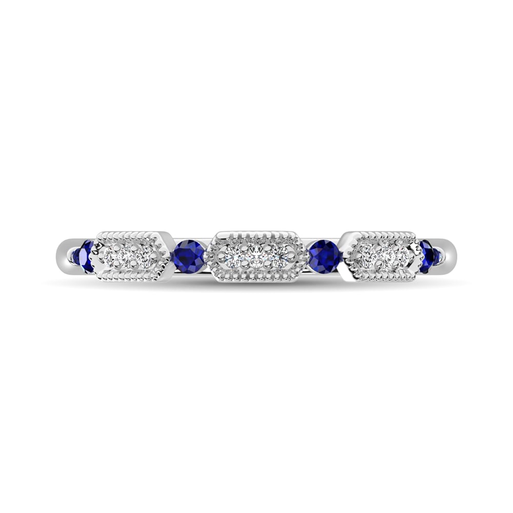 14K White Gold Alternate Diamond 1/5 Ct.tw and Blue Sapphire Ring
