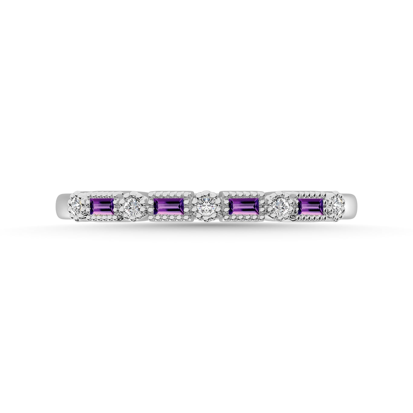 Amethyst and Alternate Diamond 1/4 Ct.Tw. Stack Band in 10K White Gold