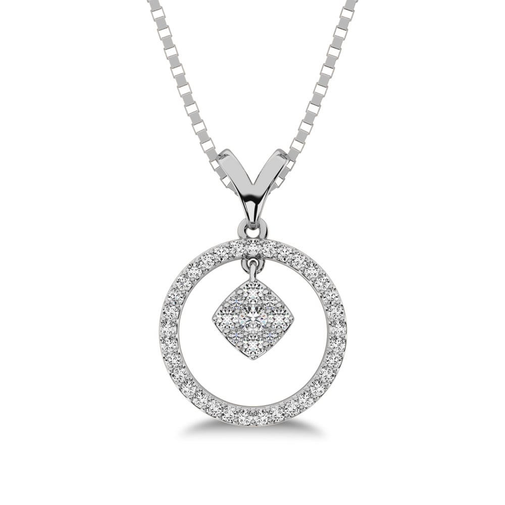 10K White Gold 1/4 Ct.Tw. Diamond Circle Dangler Pendant