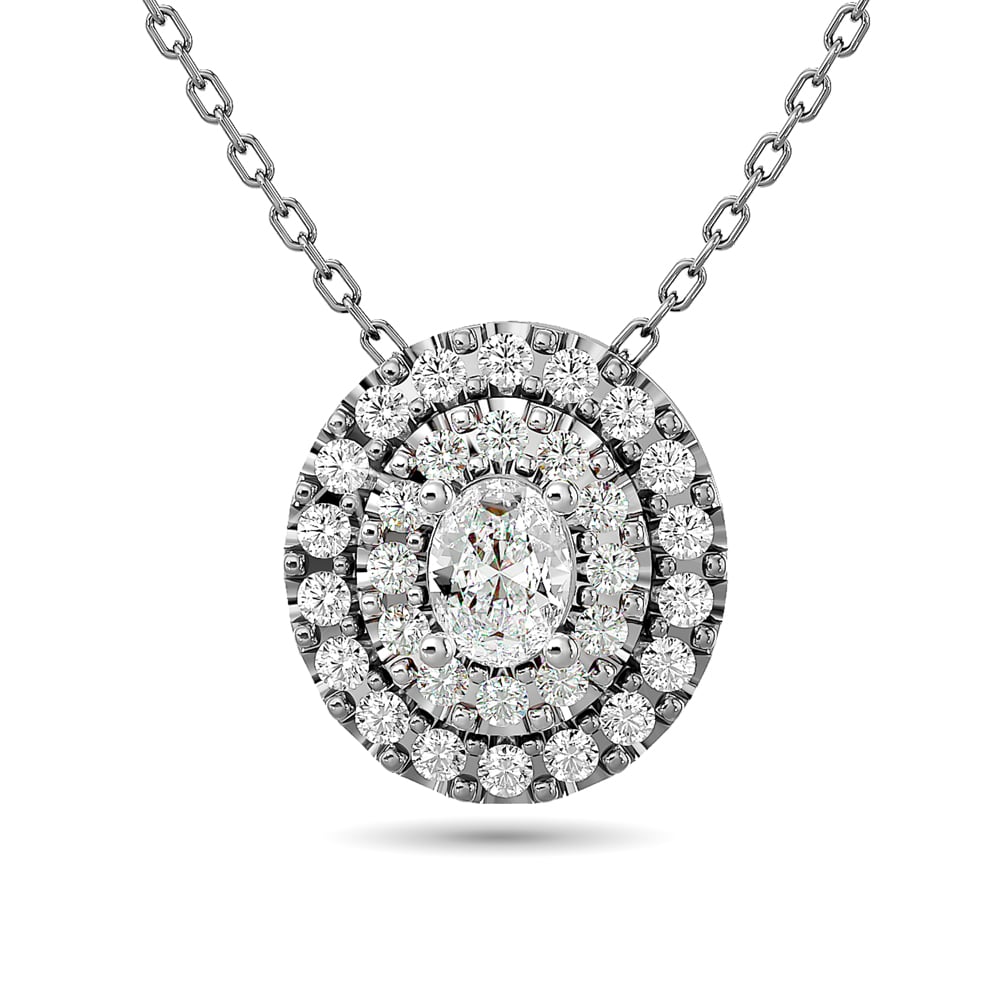 Diamond Oval Cut Double Halo Pendant 3/8 Ct.tw in 14K White Gold