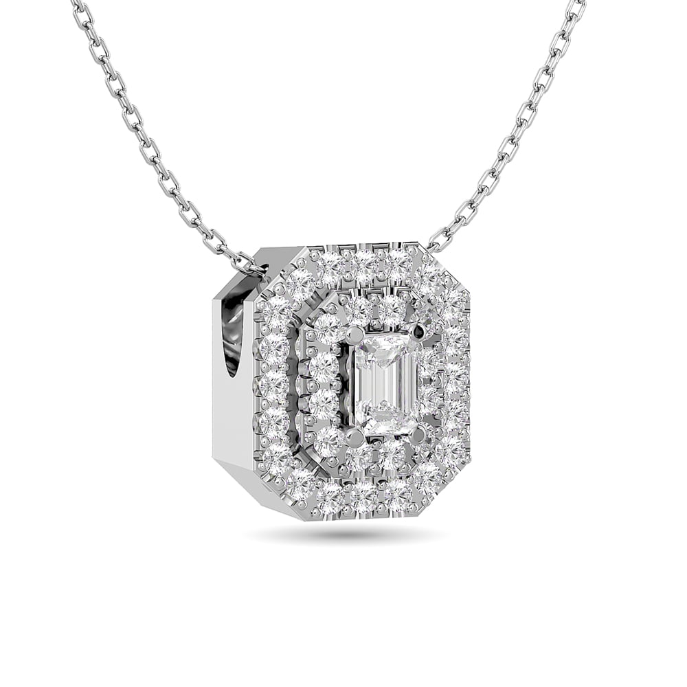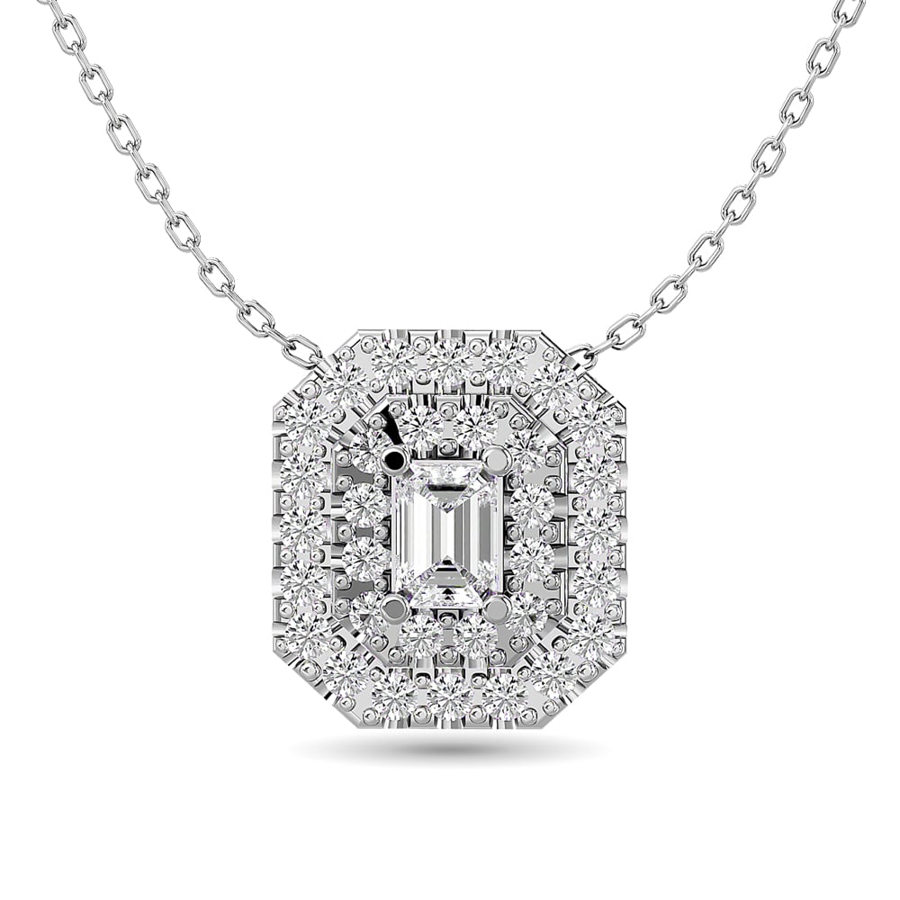 Diamond Emerald Cut Double Halo Pendant 3/8 Ct.tw in 14K White Gold