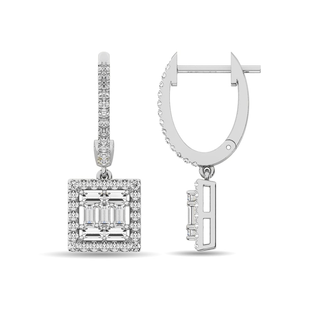 Diamond 1/2 Ct.Tw. Round and Baguette Fashion Earrings in 14K White Gold