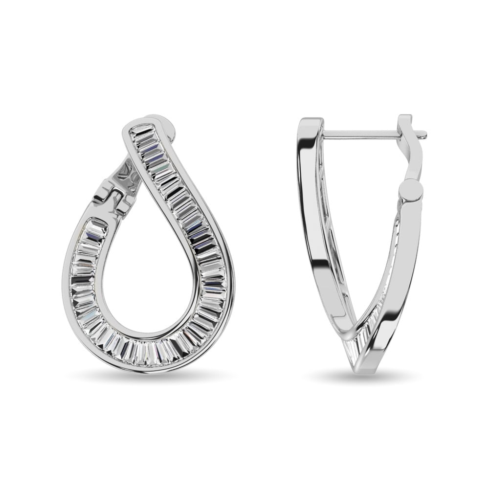 Diamond 1 1/2 Ct.Tw. Baguette Hoop Earrings in 14K White Gold
