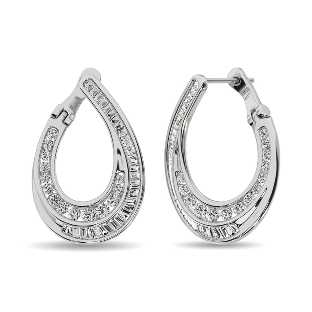 Diamond 1 Ct.Tw. Round and Baguette Hoop Earrings in 14K White Gold