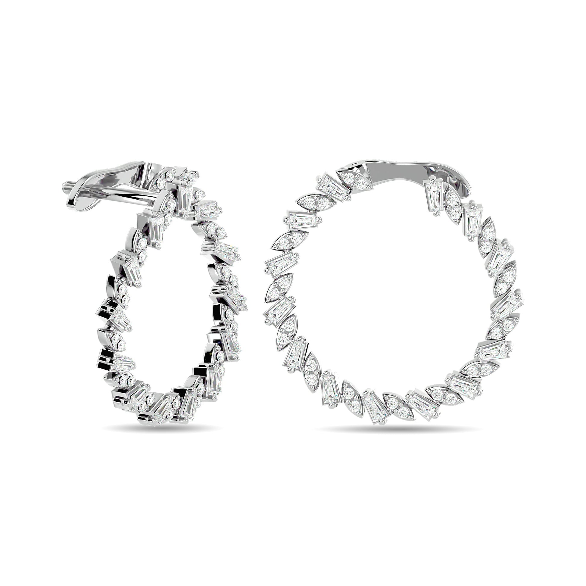 Diamond 3/4 Ct.Tw. Straight Baguette Hoop Earrings in 14K White Gold
