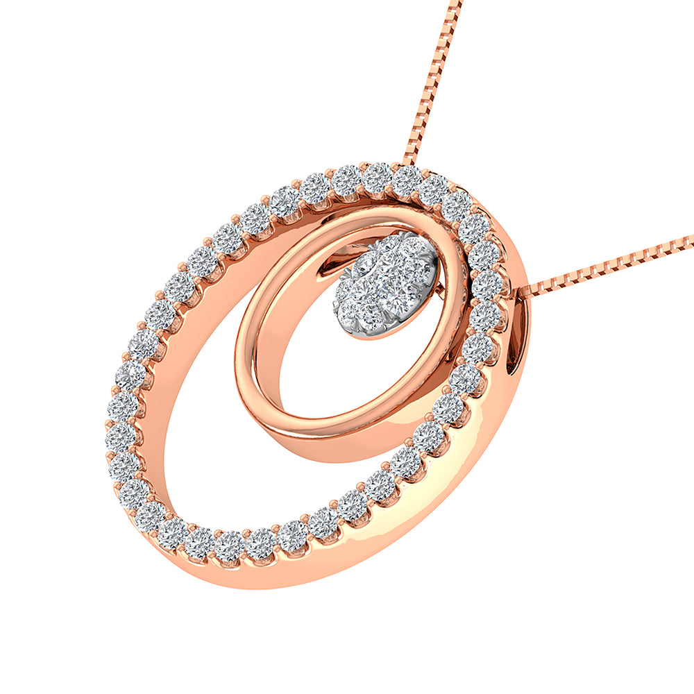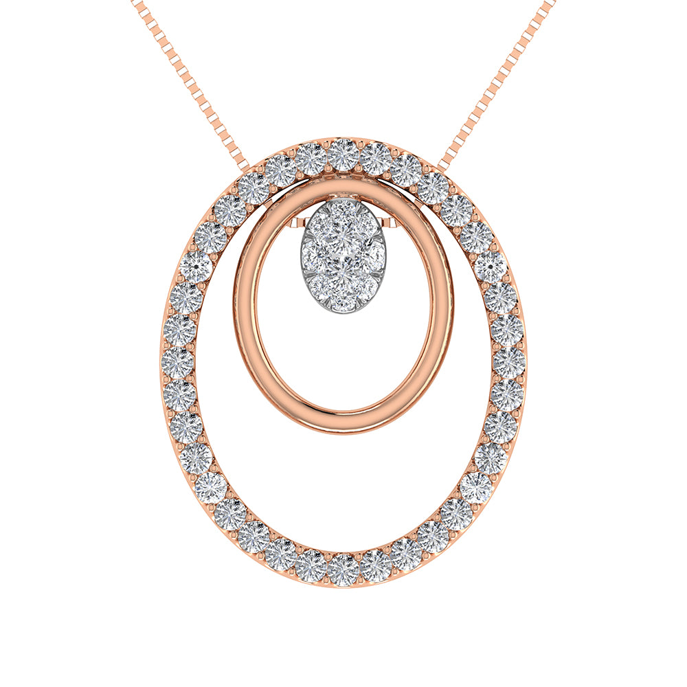 14K Pink Gold 1/2 Ct.Tw. Round Diamond Double Oval Shape Pendant