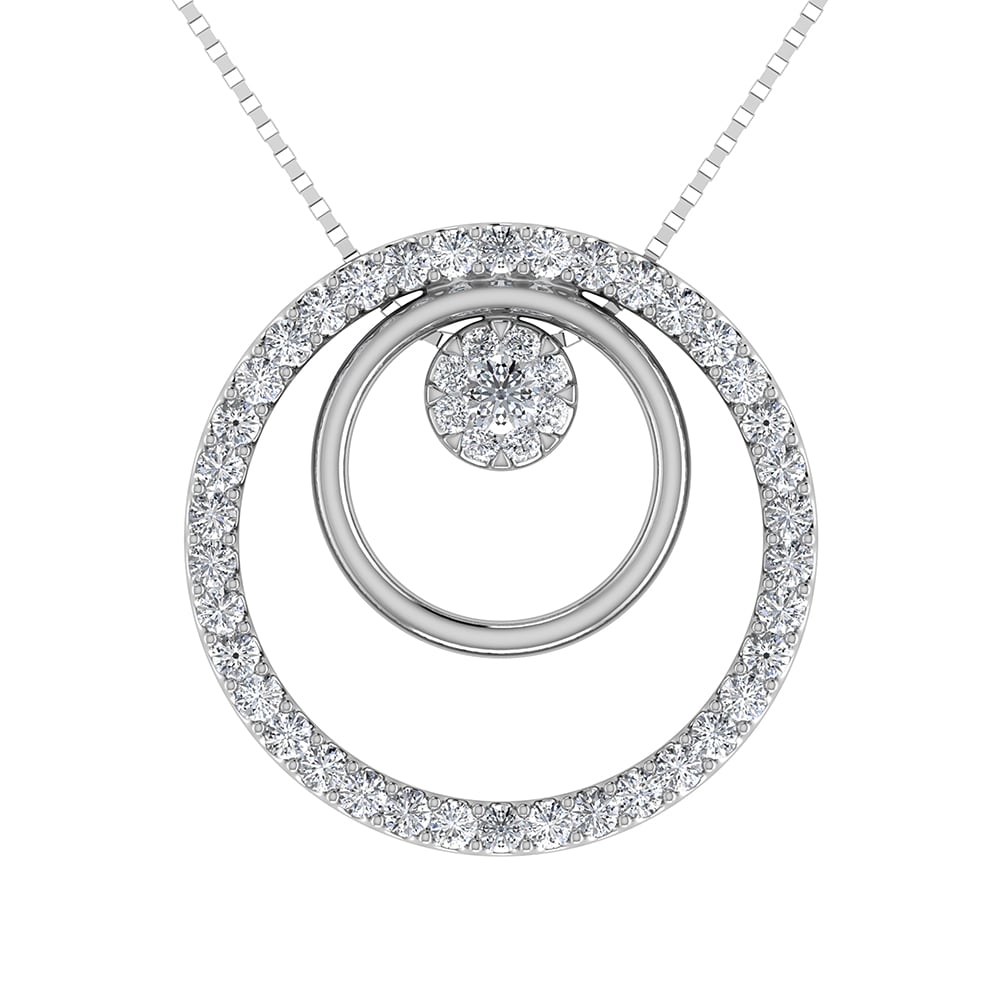 10K White Gold 1/2 Ct.Tw. Diamond Double Circle Pendant