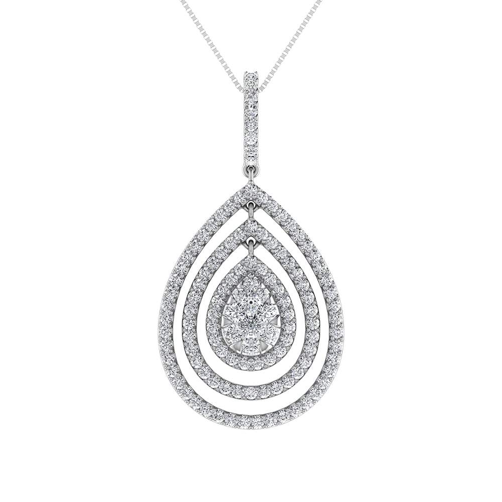 14K White Gold 1 Ct.Tw. Round Diamond Pear Shape Pendant
