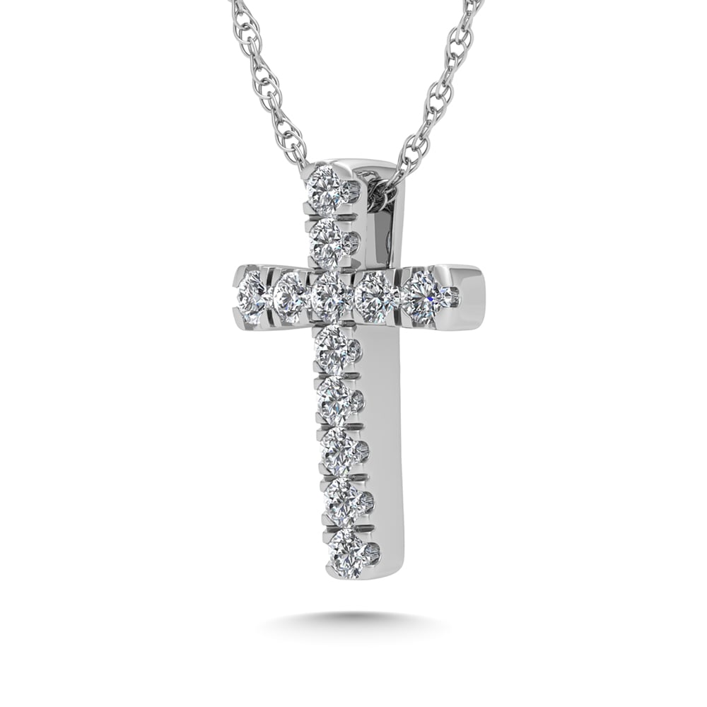 14K White Gold Diamond 1/8 Ct.Tw. Cross Pendant