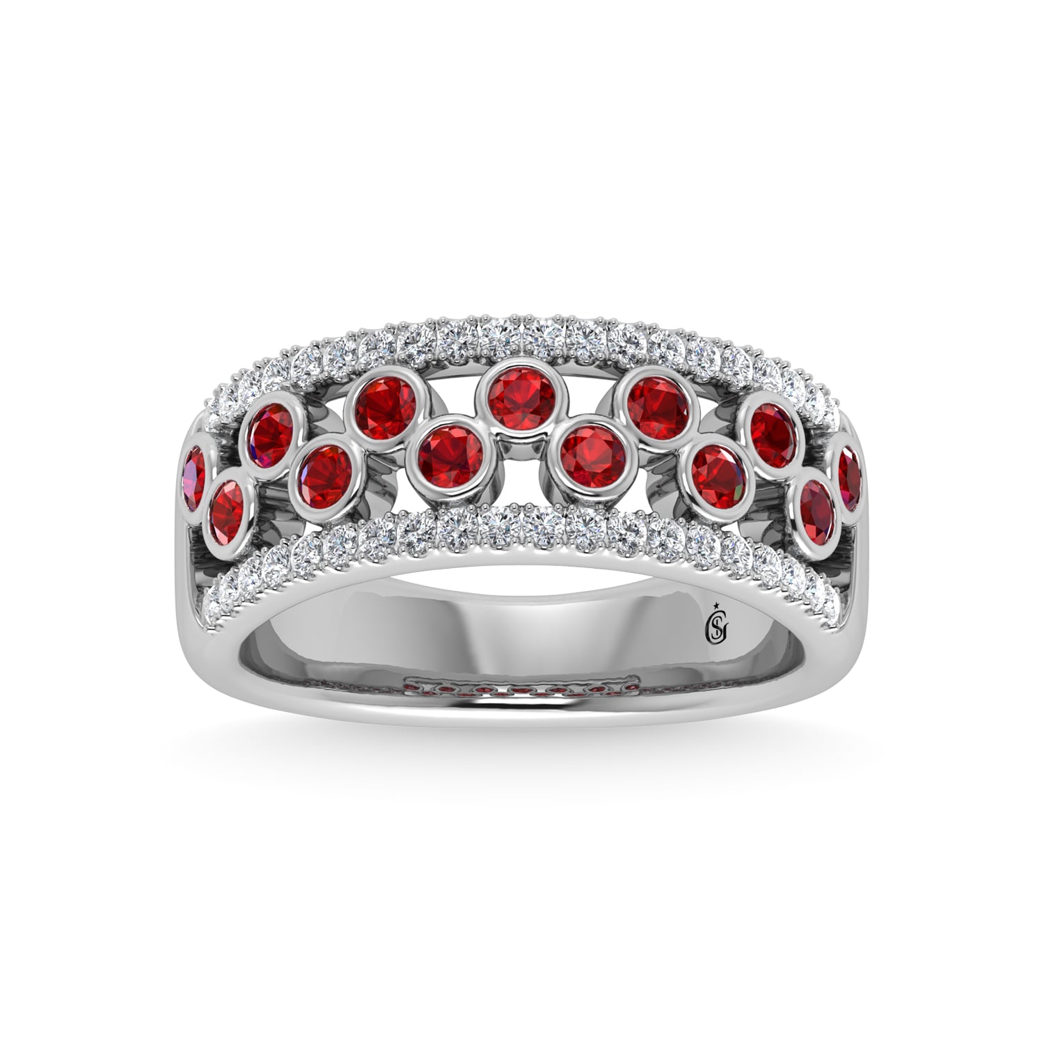 14K White Gold Diamond and Ruby 3/4 Ct.Tw. Fashion Ring