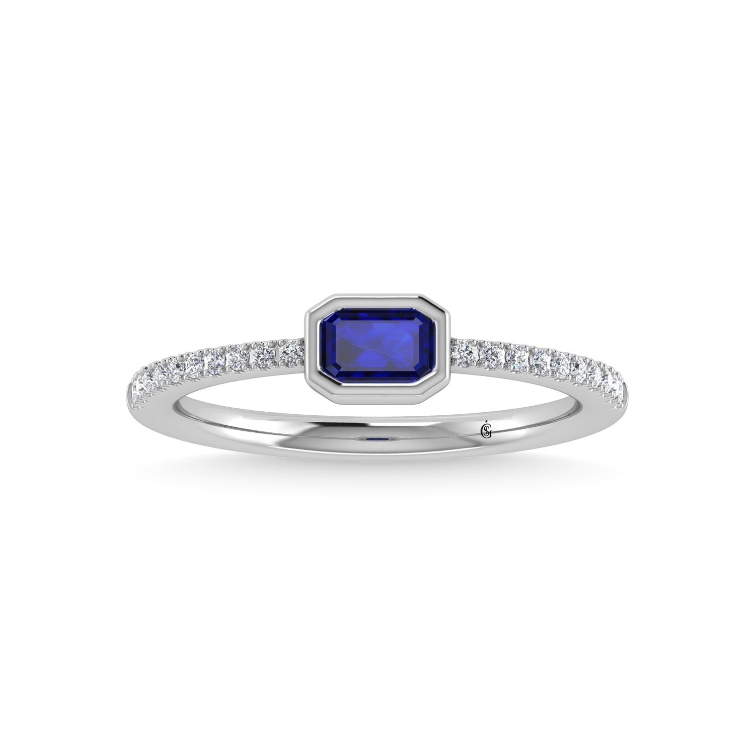 14K White Gold Diamond 3/8 Ct.Tw. And Blue Sapphire Fashion Ring