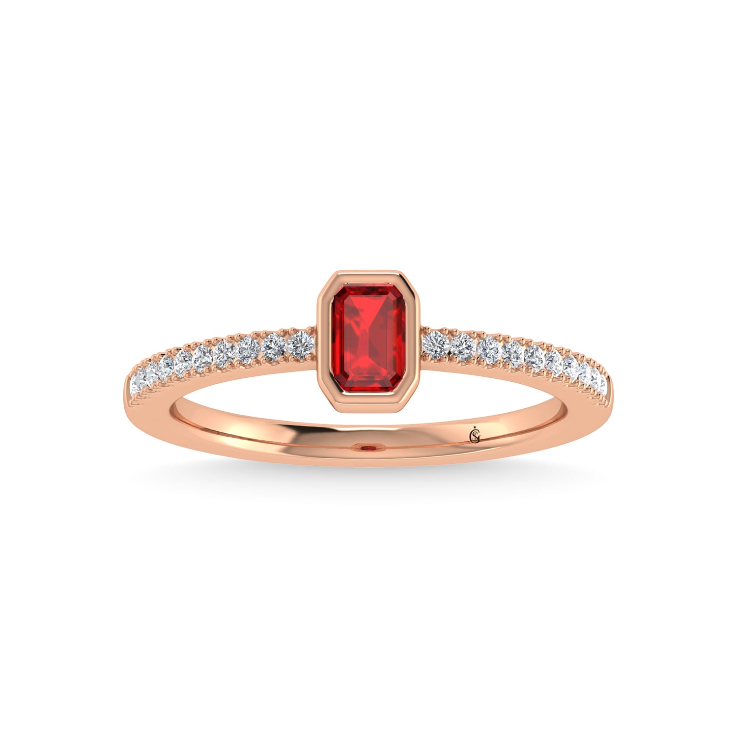 | 65120P-RU-8 | 21 | Round / Emerald Cut | Diamond / Ruby | G-h | Si2 | 0.43 | Bezel / Micro Prong | 14k Rose Gold | Women |
