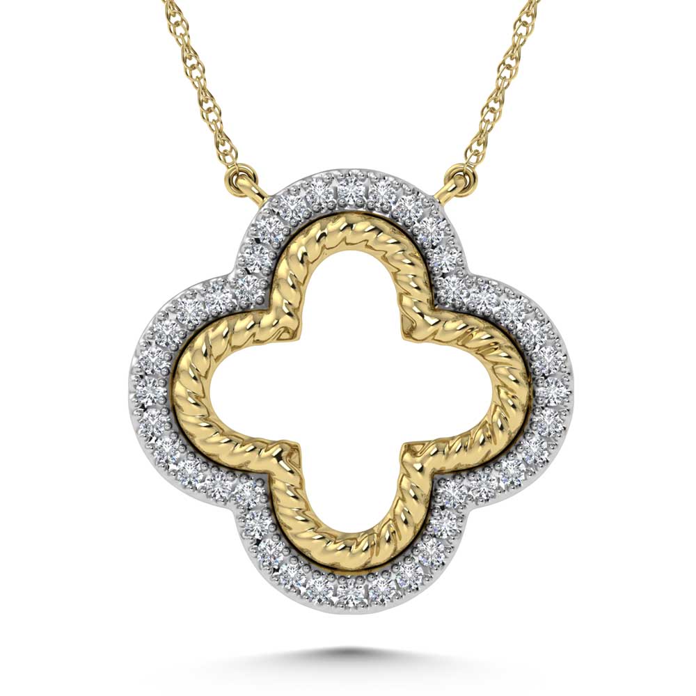 14K Two Tone Diamond 1/6 Ct.Tw. Clover Necklace