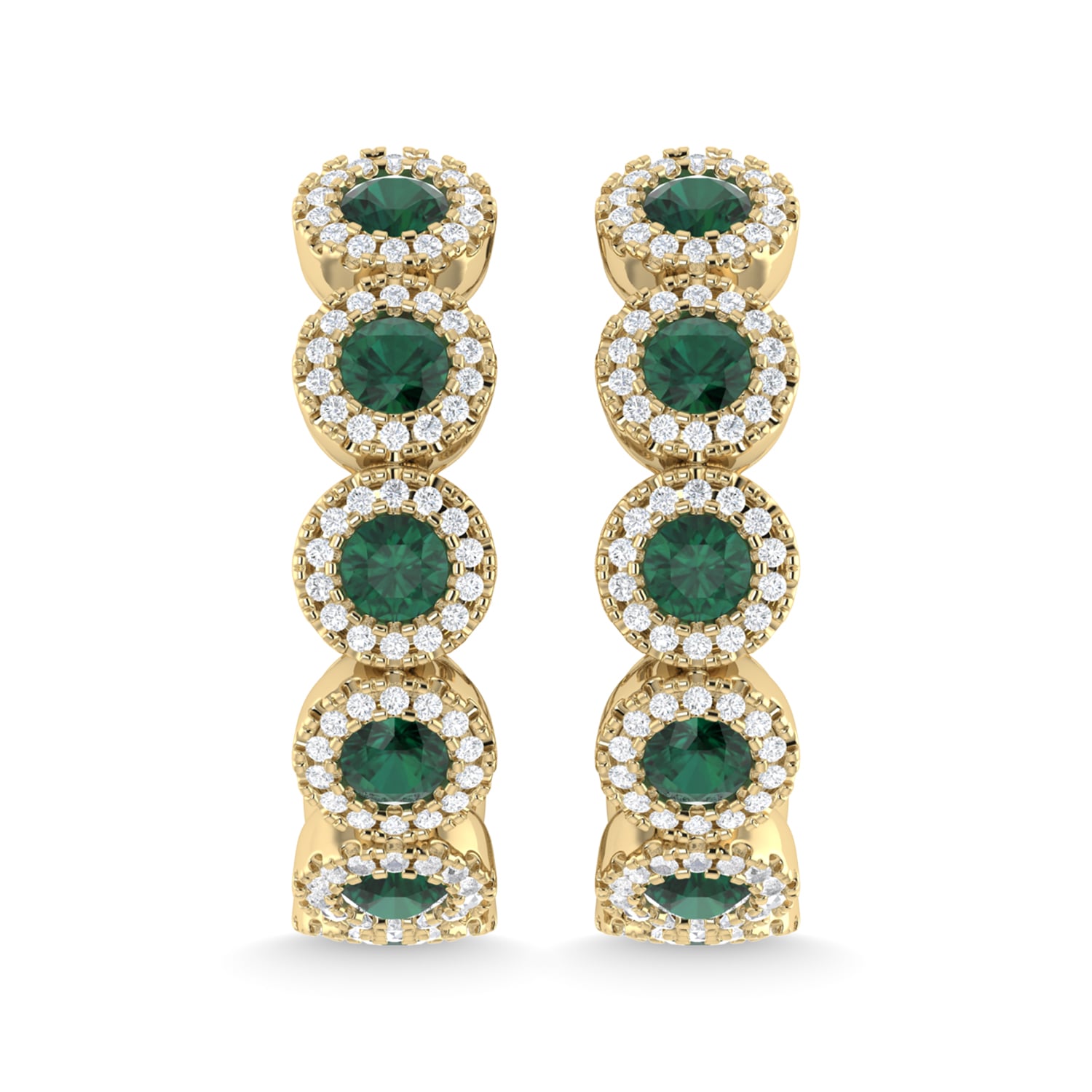 14K Yellow Gold Emerald and Diamond 1 1/8 Ct.Tw. Fashion Earrings