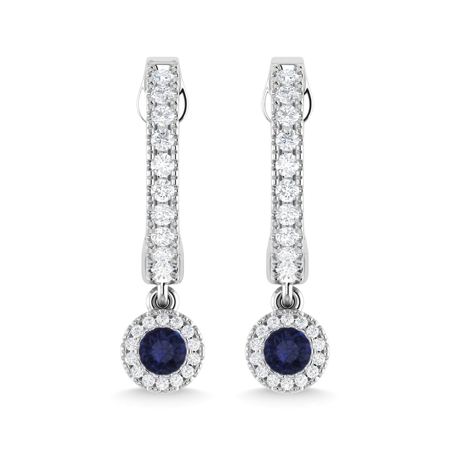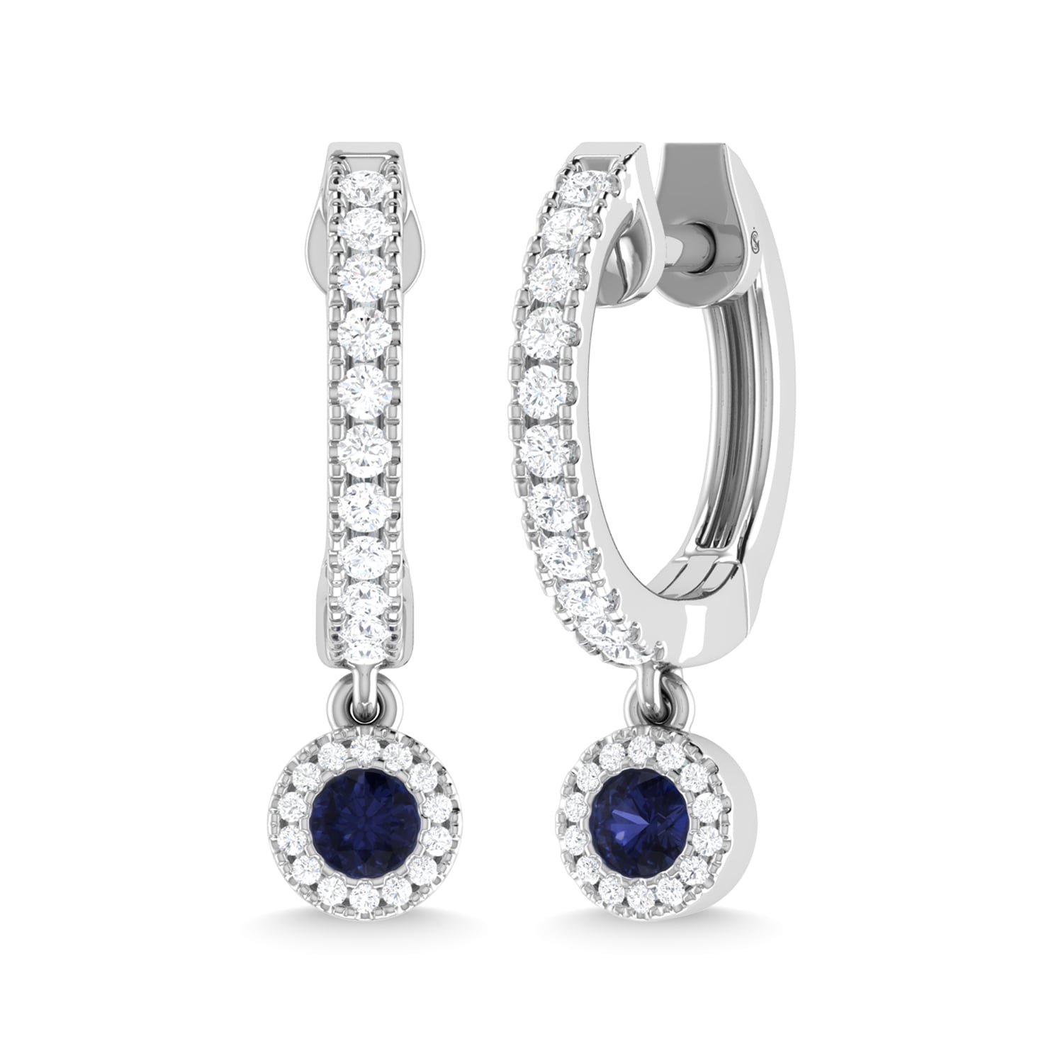 14K White Gold Blue Sapphire and Diamond 1/4 Ct.Tw. Fashion Earrings